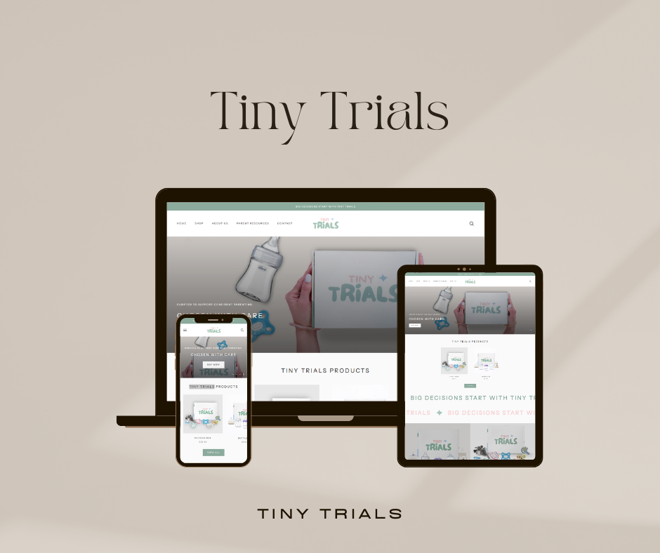 We developed a complete brand identity for Tiny Trials, including logo system, color palette, and marketing materials. Our goal was to create a strong and recognizable visual presence. The design ensures consistency across digital and print platforms.